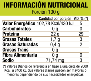 - Condimentado a limón, perejil, pimienta negra, aroma a pimienta roja, aroma limón, estabilizante INS 450i, emulsionante INS 407